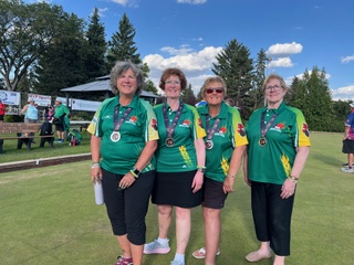Harriette Pituley, from the Regina Lawn Bowling Club, Rachel Larson, Heather Howard & Eileen McLelland, from the Saskatoon Nutana Lawn Bowling Club, who secured the SILVER medal at the Women’s Fours Lawn Bowling Canadian Championship in Edmonton, Alberta.